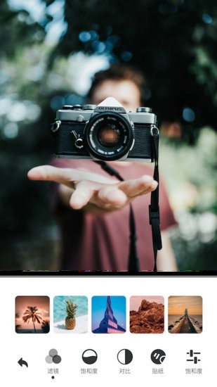 還有強(qiáng)大的修圖功能,選擇你要編輯的照片,可以為它加上濾鏡,對(duì)比度,海量的貼紙等讓你的照片與眾不同!