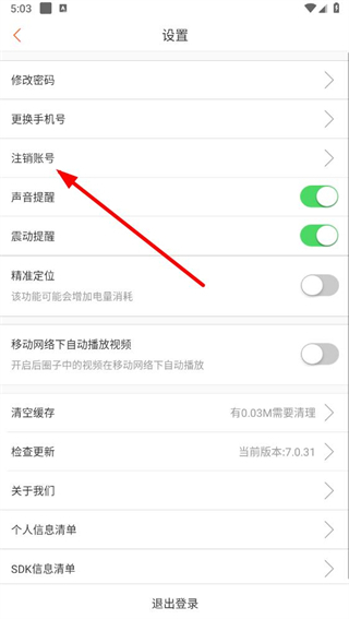 3、在設(shè)置頁面,找到并點擊注銷賬號選項。