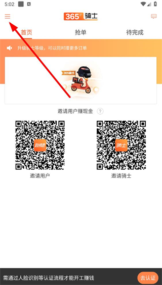 1、打開365騎士app,點擊左上角的菜單圖標(biāo),展開側(cè)邊欄。