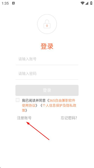 1、打開365騎士APP,在登錄頁面點擊注冊賬號。