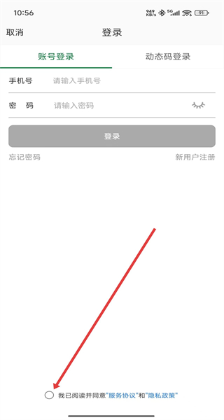 3、進(jìn)入到登錄頁(yè)面中,在登錄前需先點(diǎn)擊勾選下方我已閱讀并同意按鈕后操作。
