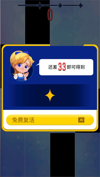1、首要保證不要按錯鋼琴鍵,后面琴鍵下落速度越來越快,即使偶爾一個琴鍵沒點到也沒關系,但是一旦點錯就失敗了。