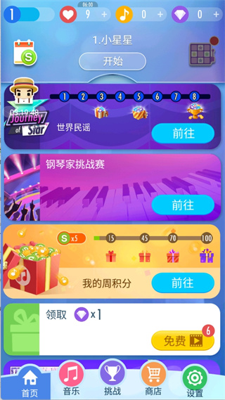 4、在按鍵中會夾雜出現(xiàn)禮物,點擊也會獲得積分和禮品,在鋼琴鍵下落比較慢的時候可以點擊獲得。