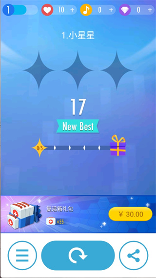 4、歌曲最后結束后會評級,分為1至3顆星星和1至3顆皇冠,三個皇冠的得分最高,也最難達到。