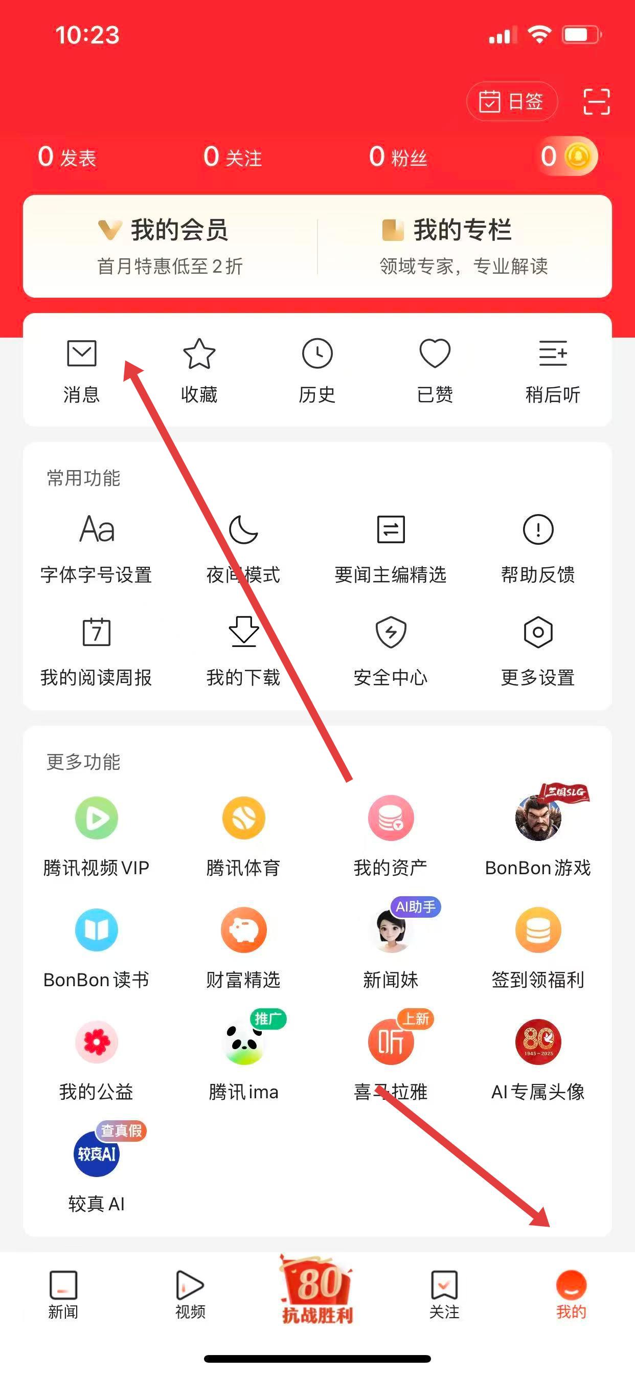 1、打開騰訊新聞APP,進入我的個人頁后,點擊消息。
