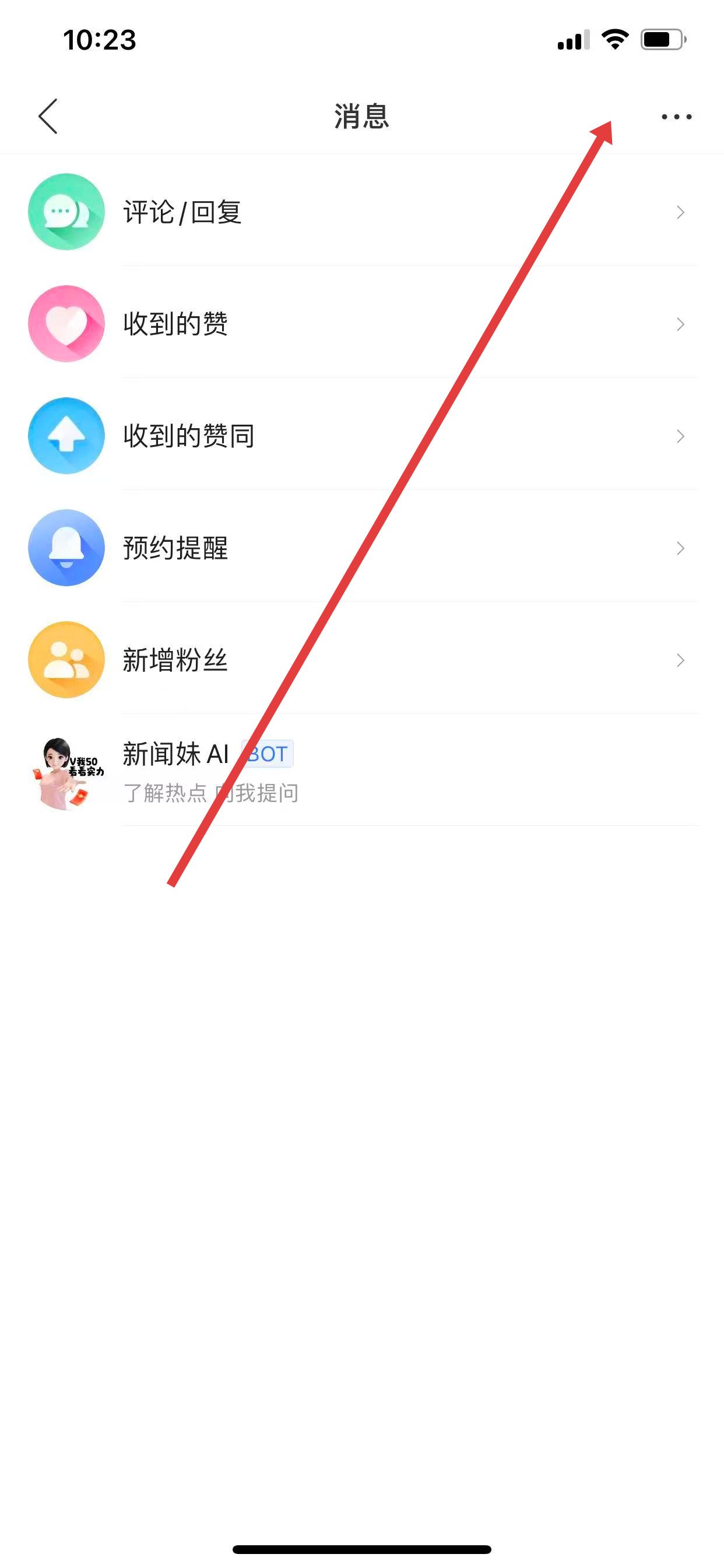 2、在消息頁,點擊右上角···,進入消息設置界面。