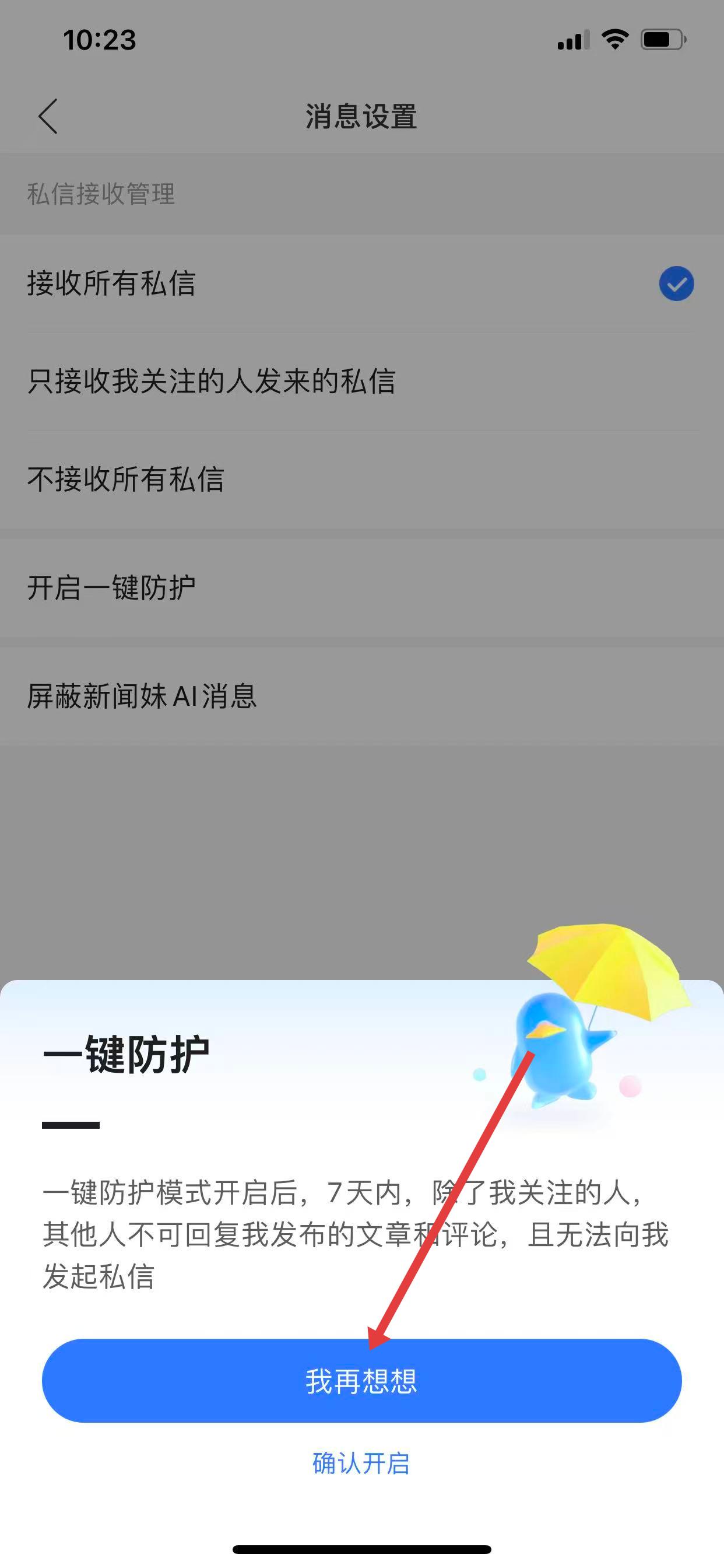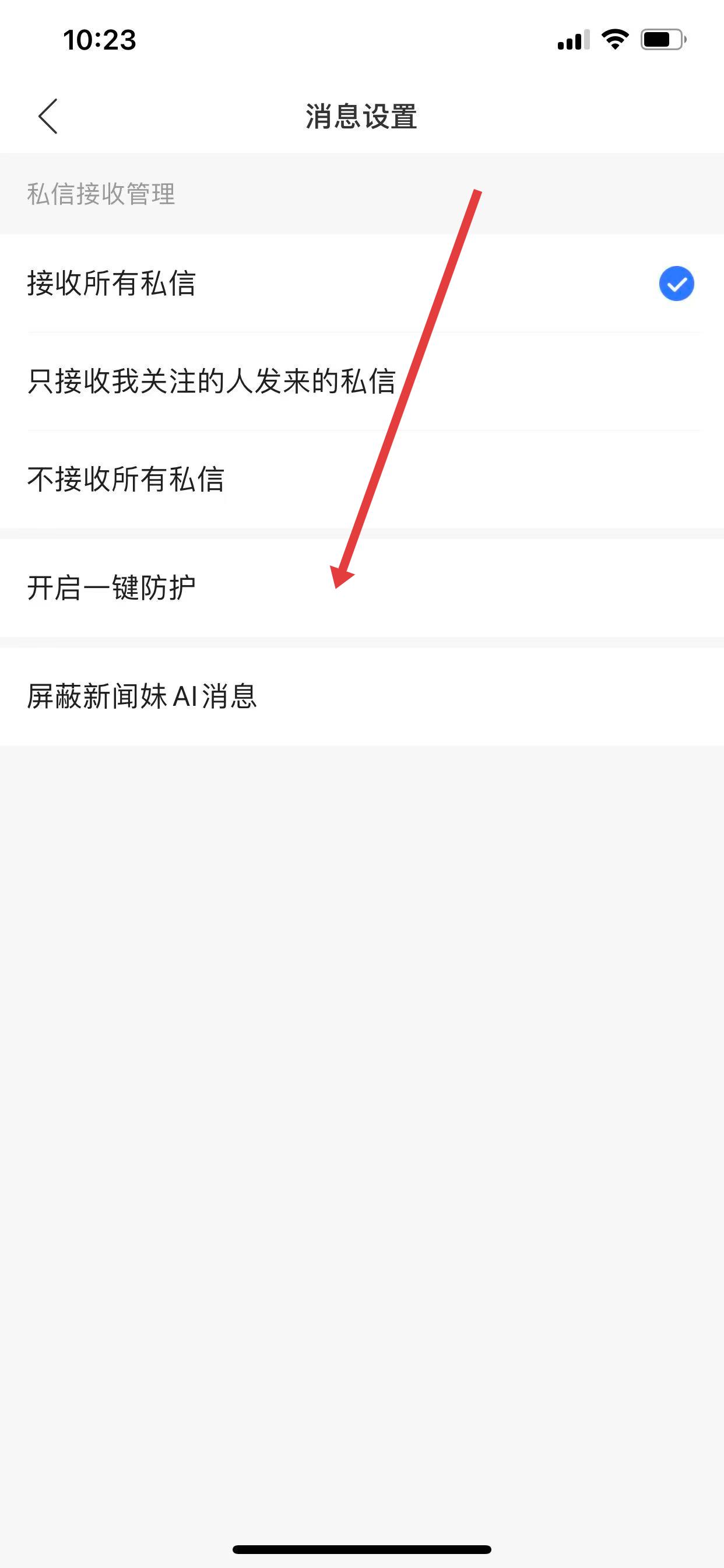 3、在消息設置頁,找到并點擊開啟一鍵防護選項。