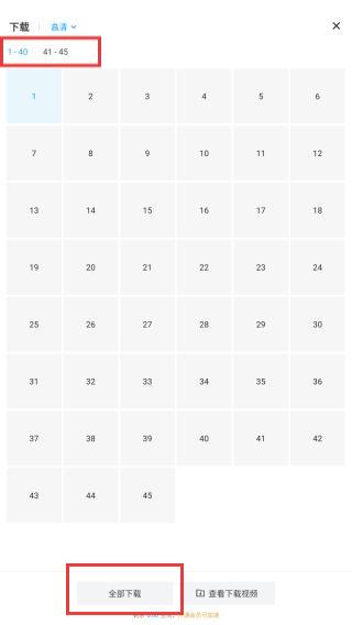 3、在集數(shù)選擇界面,點(diǎn)擊需要緩存的單集或點(diǎn)擊底部全部下載按鈕,即可開(kāi)始緩存視頻。