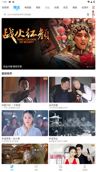 1、啟動(dòng)PP視頻的應(yīng)用,進(jìn)入首頁(yè)點(diǎn)擊右上的功能按鈕。
