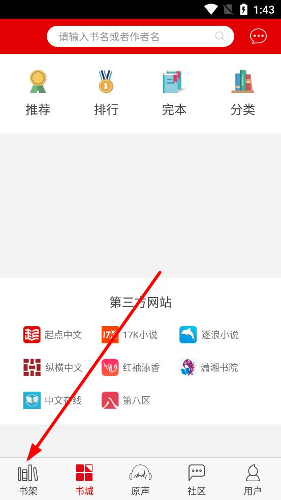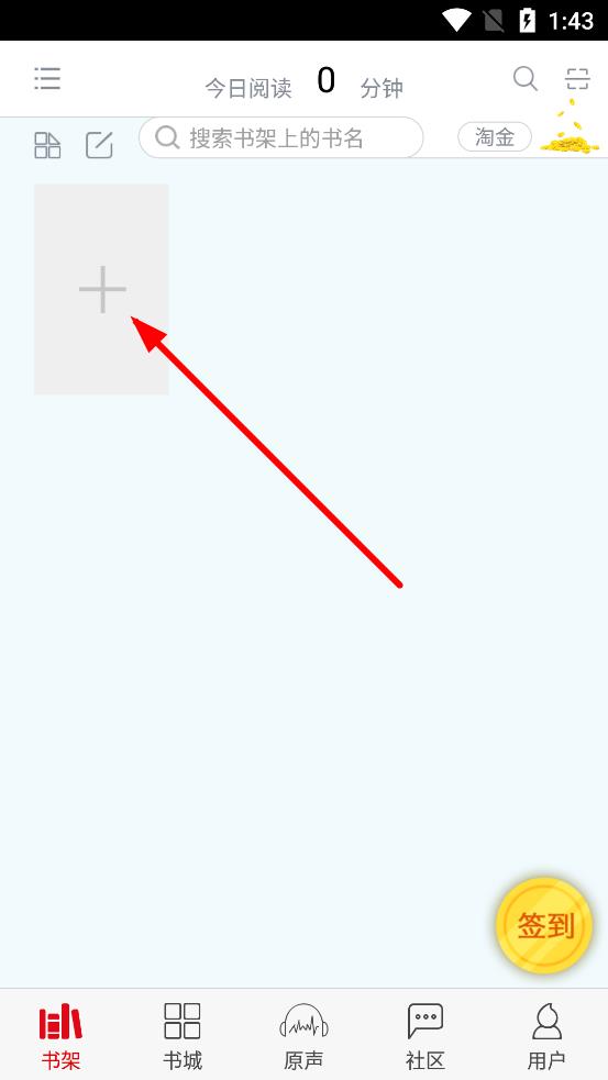 2、在書架界面中,點(diǎn)擊帶有+號的空白區(qū)域。