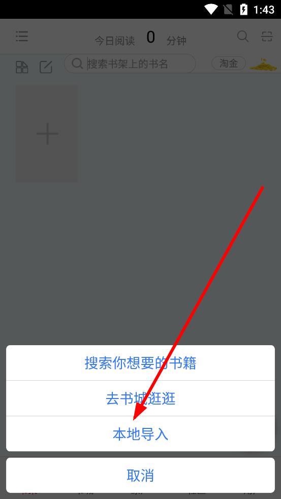 3、在彈出的選項(xiàng)框里,點(diǎn)擊本地導(dǎo)入然后按照提示操作選擇本地小說文件完成導(dǎo)入。
