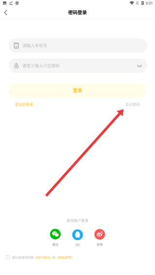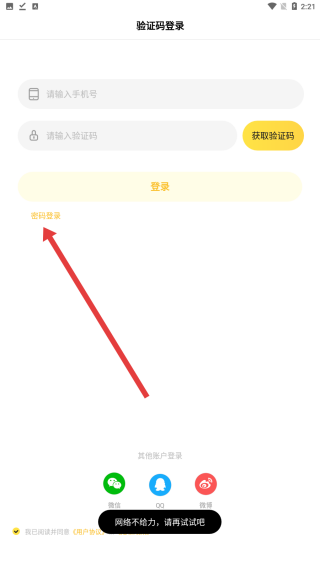 1、在驗證碼登錄界面,點擊密碼登錄選項,切換至密碼登錄模式,準(zhǔn)備通過密碼完成賬號登錄。