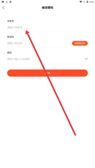 3、在修改密碼界面,先在手機號輸入框填寫號碼,再獲取驗證碼、設(shè)置新密碼,完成密碼修改操作。