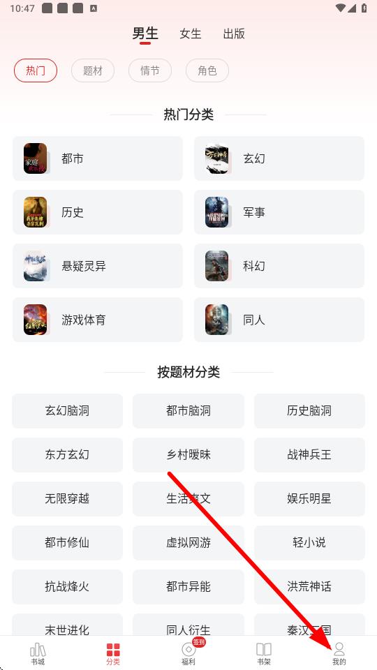 1、打開追書神器app,點(diǎn)擊底部導(dǎo)航欄中的我的選項(xiàng)進(jìn)入個(gè)人頁面。