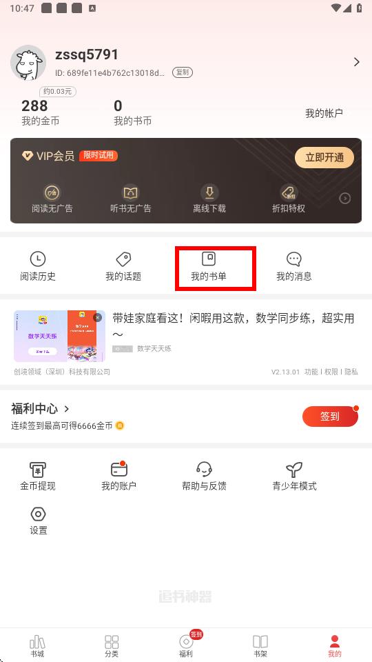 2、在個(gè)人頁面中找到我的書單選項(xiàng)并點(diǎn)擊進(jìn)入。