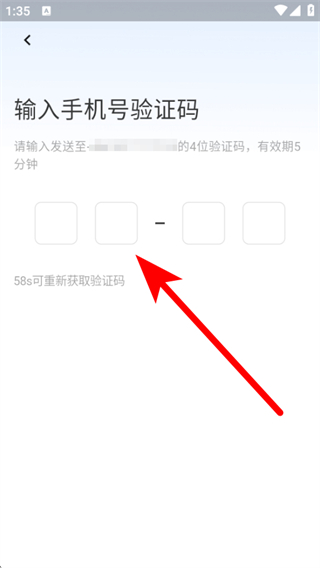 3、進入輸入手機號驗證碼頁面,輸入收到的4位驗證碼。