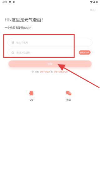 4、在登錄的頁(yè)面內(nèi),輸入登錄的手機(jī)號(hào)、驗(yàn)證碼,再點(diǎn)擊登錄的按鈕即可。
