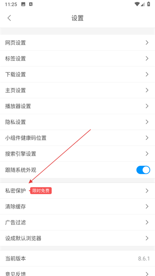 3、進(jìn)入設(shè)置頁面后,點(diǎn)擊私密保護(hù)選項(xiàng)。