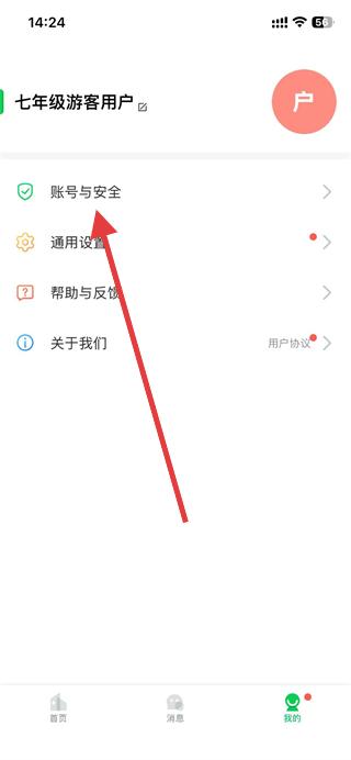 2、進入我的頁面,找到并點擊上方的賬號與安全選項。
