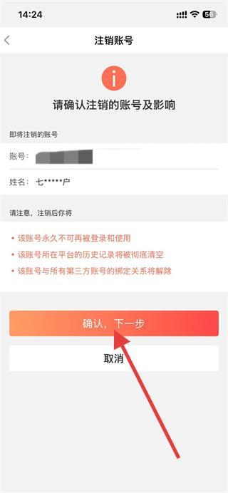 4、確認無誤后點擊確認,下一步,按照后續(xù)提示完成注銷操作。