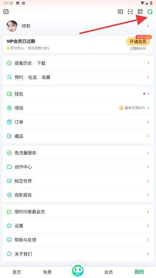 1、進(jìn)入我的頁面后,用戶需點(diǎn)擊右上角搜索的功能圖標(biāo)。