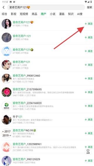 3、在搜索結(jié)果中,找到目標(biāo)用戶后,點(diǎn)擊其右側(cè)的+關(guān)注的按鈕,即可發(fā)送好友申請(qǐng)。