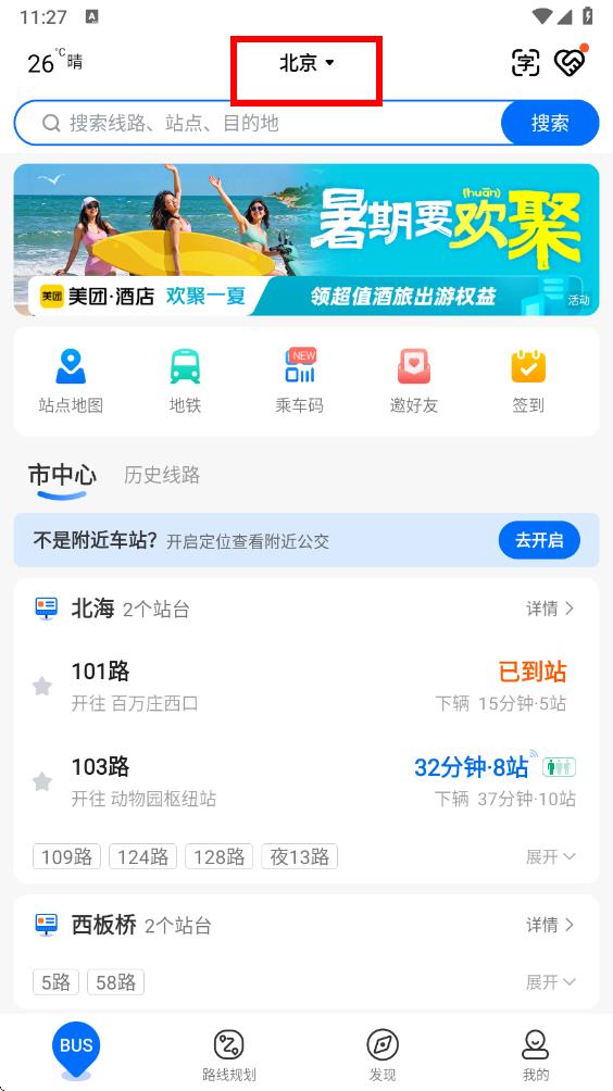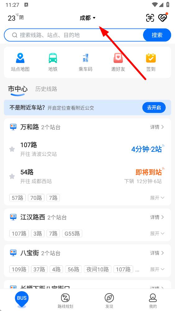4、成功選擇城市后,界面會(huì)切換到所選城市的公交相關(guān)信息頁(yè)面,可查看該城市的公交站點(diǎn)、線路等內(nèi)容。