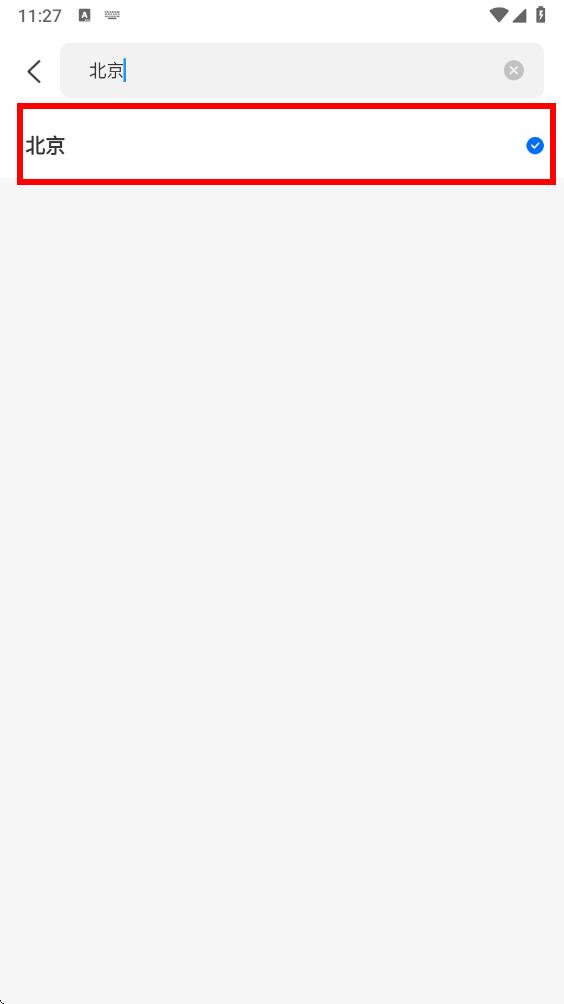 3、輸入城市名稱后,在搜索結(jié)果中點(diǎn)擊對(duì)應(yīng)的城市選項(xiàng)。