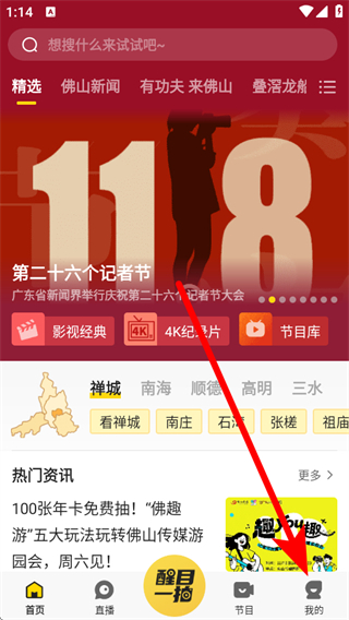 1、在看佛山app首頁(yè),點(diǎn)擊右下角我的選項(xiàng),進(jìn)入個(gè)人界面。