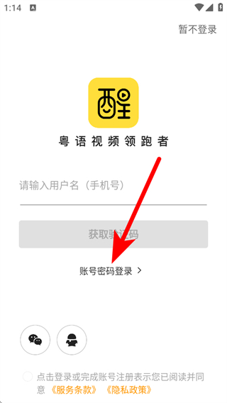 3、在登錄頁(yè)面,點(diǎn)擊賬號(hào)密碼登錄選項(xiàng),進(jìn)入賬號(hào)密碼登錄界面。
