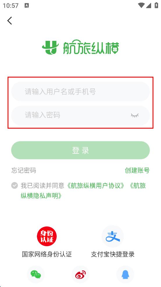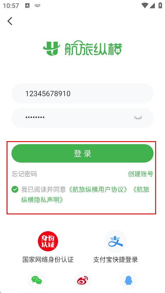 4、勾選我已閱讀并同意航旅縱橫用戶協(xié)議,然后點擊“登錄”按鈕。
