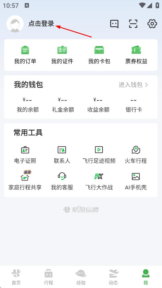 2、在“我”的頁面,點擊上方顯示“點擊登錄”的區(qū)域。
