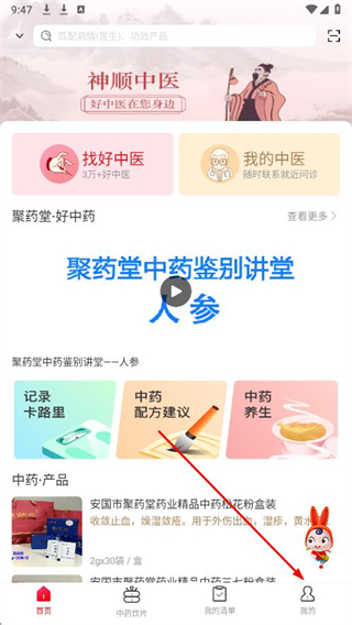 1、打開神順健康A(chǔ)PP,點(diǎn)擊導(dǎo)航欄中的我的。