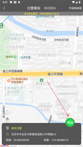 3、進(jìn)入位置模擬界面后,拖動(dòng)到自己想要的位置,點(diǎn)擊屏幕右下角綠色的修改按鈕即可。