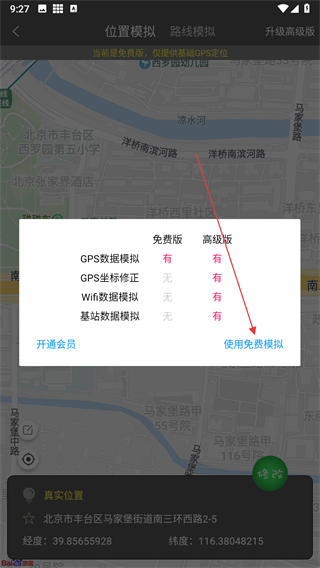 4、點(diǎn)擊之后會(huì)彈出免費(fèi)版與高級(jí)版功能對(duì)比窗口,點(diǎn)擊使用免費(fèi)模擬選項(xiàng),即可完成修改。
