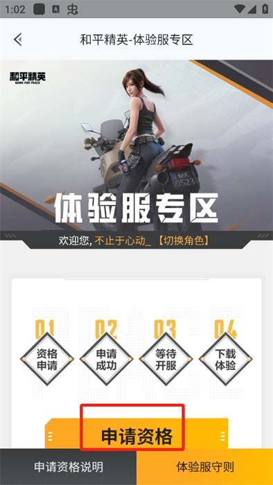 提示:想要申請測試資格,需要滿足申請資格,然后在【和平營地app-營地工具-體驗服申請】中去進(jìn)行申請,網(wǎng)頁版暫時無法申請。