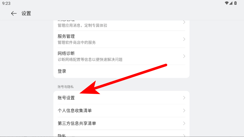 3、在設(shè)置界面,點(diǎn)擊賬號(hào)設(shè)置選項(xiàng),進(jìn)入歡太賬號(hào)設(shè)置頁(yè)面。