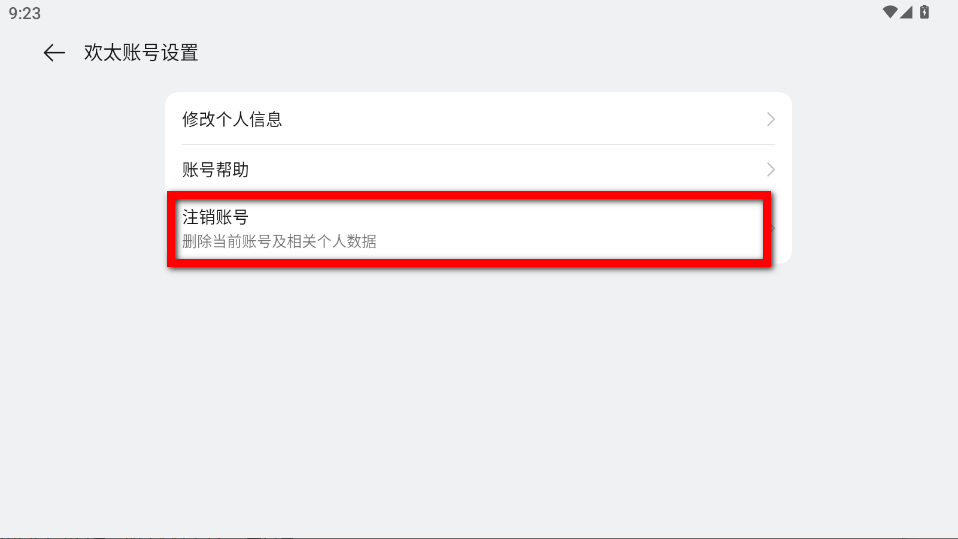 4、在歡太賬號(hào)設(shè)置頁(yè)面,點(diǎn)擊注銷賬號(hào)選項(xiàng),即可進(jìn)行賬號(hào)注銷操作。