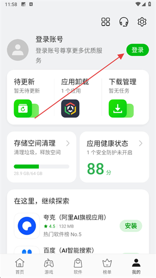 2、在手機(jī)上安裝并打開(kāi),圖標(biāo)為軟件商店