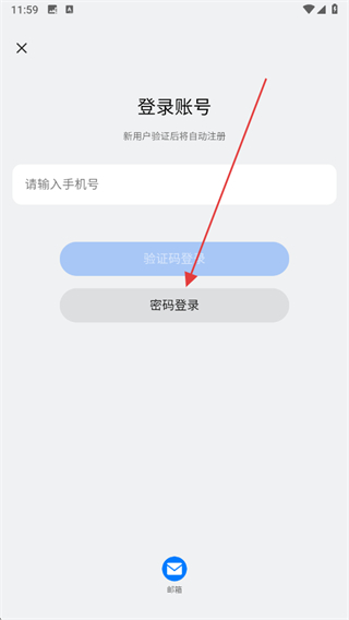 3、在登錄頁(yè)面中選擇密碼登錄選項(xiàng),切換到密碼登錄界面。