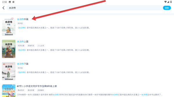 3、在搜索完水滸傳后,可以在下列書(shū)籍中選擇點(diǎn)擊進(jìn)入查看水滸傳內(nèi)容。