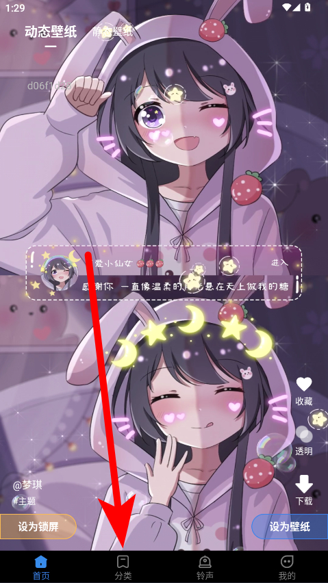 1、在壁紙app首頁,點擊下方分類選項,進入分類界面。