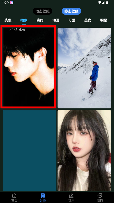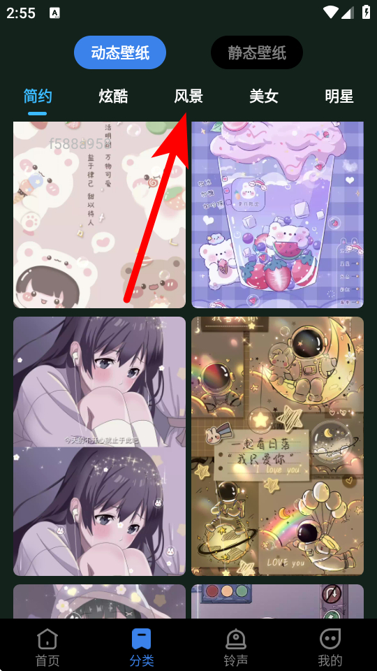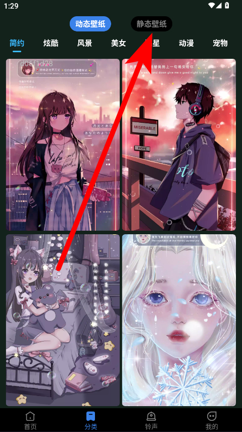 2、在分類界面中,點擊靜態(tài)壁紙或動態(tài)壁紙標(biāo)簽,篩選壁紙類型。