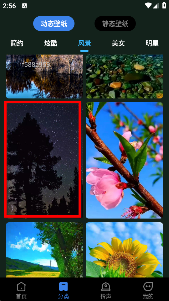 2、在分類界面,點擊風(fēng)景分類,進入風(fēng)景壁紙列表頁面。