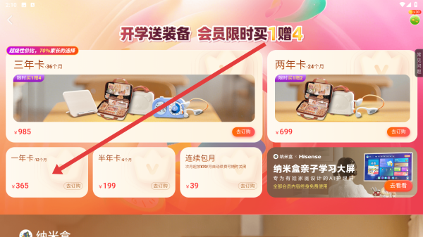 2、在會(huì)員的充值的頁面中,可以通過選擇點(diǎn)擊一年卡進(jìn)行購買操作。