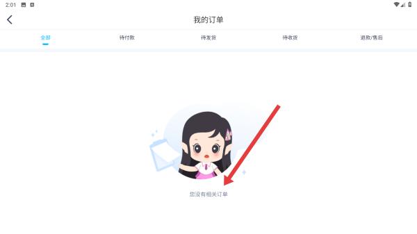 3、在我的訂單頁面中,可以查看到當(dāng)前賬號沒有相關(guān)訂單的信息。