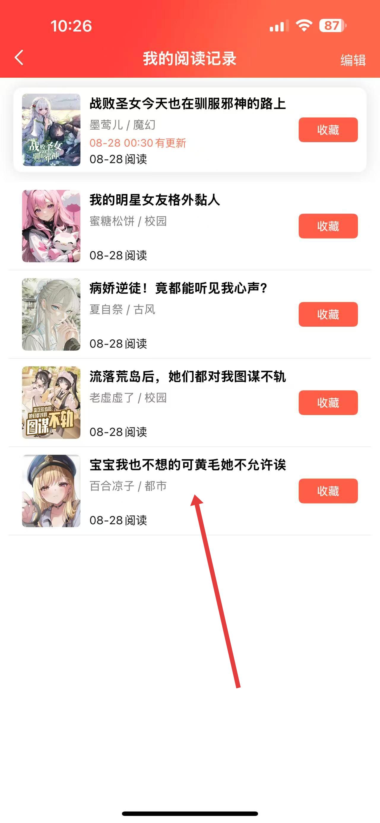 3、在閱讀記錄頁面,就能看到你之前閱讀過的小說列表,點(diǎn)擊相應(yīng)小說即可繼續(xù)閱讀。