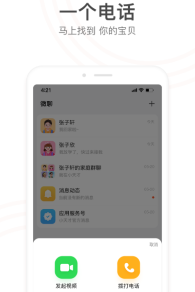 實(shí)時(shí)的語(yǔ)音聊天,與孩子更加便捷的溝通,使家庭關(guān)系更加親密和融洽!