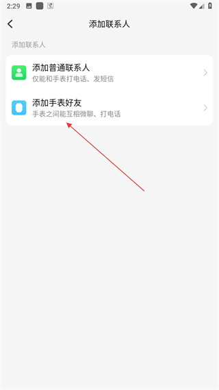 3、在添加聯(lián)系人頁(yè)面,點(diǎn)擊添加手表好友選項(xiàng),即可選擇添加手表的方式。