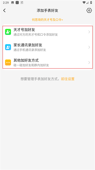 4、在添加手表好友頁(yè)面,選擇添加方式,按照提示操作即可添加手表好友。